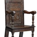An Elizabethan oak panel-back armchair auctioned at Bonhams for £22,500 ($34,657) yesterday (July 25).