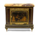 ![]() Mounted with gilt bronze, the ebonised and Japanned side cabinet sports a fine marble top |