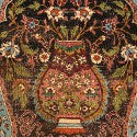 Originating in Kashan or Isfahan, two cities in modern day Iran, the carpet displays a motif of spiralling tendrils with inscriptions from the Qur'an in the border.