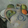 Pichet et Fruits sur une Table, painted in 1893-4, is a still-life painted at the pinnacle of Cézanne's experimentation with still-life. The various pieces are well-spaced out in the elongated picture, and the background allows the work to appear illuminated rather than trapped in the lighting of a room.