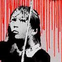 The image was first produced as one of more than a dozen murals that Banksy grafittied onto buildings around the city of New Orleans in September 2008. While this image, entitled NOLA, depicts a young girl sheltering from red rain under an umbrella, other pictures included a young boy flying a fridge like a kite and Abraham Lincoln as a homeless man.