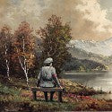 Bids for the present work started at $74,000 and some predict that it could reach as much as $1m. Entitled The Banality of the Banality of Evil, the piece is a classic landscape of a lake and snow-topped mountain, to which Banksy has added a Nazi figure sitting on a bench.