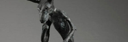 The piece is a riff on Rodin’s The Thinker, replacing the human figure in the original with a hare.