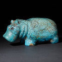 Therefore models like this turquoise faience hippo were created to protect individuals from the threat of Hippos even in the afterlife. Part of the ritual behind these pieces involved the breaking of the Hippo's snouts and legs to ensure there were of no danger.