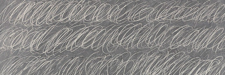 "The brilliance of the artist's gestural genius is on full display as the written form dissolves into a nuanced grey background."