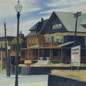 Attempting to capture the melancholy and loneliness of Depression-era America, the work is painted from the perspective of one looking through a car window on a deserted intersection.
