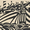 The woodcut was created circa 1918 following the first world war, in which English artist Wadsworth had been employed to design the striking dazzle camouflage for Allied ships.