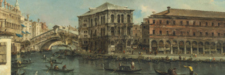 Titled Venice: The Rialto Bridge with the Palazzo dei Camerlenghi, it’s a classic from one of the last of the great Venetian view painters.