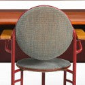 The deep red of the desk, a shade known as "Cherokee red", is identical to the exterior brickwork.