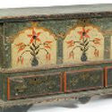 At the top end of the scale is an ancient but remarkable blanket chest, allegedly crafted by Johannes Rank of the Rank-Selzer families of makers and decorators. Hailing from Dauphin (now Lebanon) County in Pennsylvania, the decorated chest is dated 1791 - only 10 years after the American Revolution.