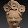 From a much earlier period, the Han dynasty (206 BC-220 AD), are two kneeling pottery figures: a cook and a merchant. The merchant holds a single fish, whilst the cook wields a knife above a set of delicacies.