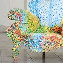 "I found an appropriate ready-made in the replica of an eighteenth century armchair, and chose a detail from a Signac painting for the pattern that covers the whole armchair... I also wanted to reach a different type of result, i.e. to make a culturally grounded object based on a false one, seeing that the redesign in this case has been performed on a piece of kitsch, a fake-antique armchair that is still being mass-produced today..."