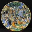 The charger originates from the walled city of Urbino, which is now a World Heritage site famous for its tin-glazed pottery known as maiolica. Istoriato is the name given to the first exported wares from the region, which were created using engravings by mannerist painters.