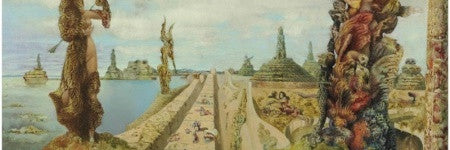 The present work is described as "a surrealistic tour-de-force" depicting a bizarre and alien landscape.