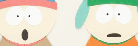 This cel shows main characters Stan and Kyle wearing expressions of dismay.