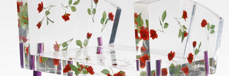"Experiments with natural roses were conducted, but the flowers would burn up in the acrylic resin, prompting a serendipitous moment when Kuramata decided... it has to be fake [materials] because Blanche Dubois is a fake.'"