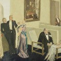 Commissioned for the newly opened bar at the Saville Theatre in London in 1931, the painting depicts various members of the city's theatrical elite.