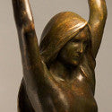 The lamp's striking design shows a strong, reserved bronze mermaid hoisting a glowing nautilus shell above her head, whilst waves surround her waist. The effect is to make the glow of the nautilus seem almost magical, even though it is achieved by conventional means.