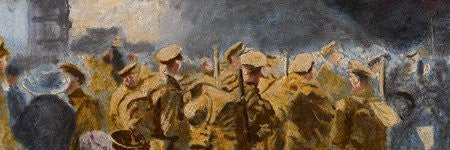 The 50 by 61cm piece depicts troops leaving for the first world war from London's Victoria Station, and was inspired by a wartime photo by the celebrated FJ Mortimer.