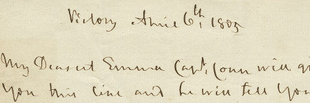It was written abroad the Victory in April 1805 and reads: "My Dearest Emma Capt. Conn will give you this line and he will tell you of my present misery at not having yet fallen in with the French fleet, but if I do what happiness it will be to you and to me and we must hope for the best, I am all all yours and only yours I think of you for ever May God bless you for your only your Nelson & Bronte".