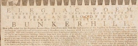Titled "An Elegiac Poem Composed on the Never-to-be-Forgotten Terrible and Bloody Battle Fought at an Intrenchment on Bunker-Hill, now justly called (by the Regulars) Bloody-Hill", it details the events of the battle in Boston.