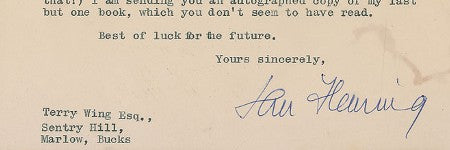The letter, written on June 21, 1962, is a response to Terry Wing, who wrote to Fleming aged "12 and a bit". It is currently selling at $7,259.