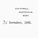 Dated November 25 1948 this typed letter is on 'Chartwell' headed paper, the country home of the Churchill family.