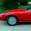 This 1970 Maserati Ghibili Convertible has a red exterior and black interior.