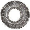 The example at auction was struck from a Charles IV Mexico City Mint eight reales, and is in good very fine condition, with some dark oxidation at the edge and the central hole not fully punched out in one quarter.