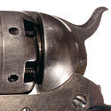 The loading lever has a rounded end and is secured by a T-shaped barrel mounted spring which slot through a channel in the lever lug. The cylinder has a single locking pin that engages a hole in the base of the hammer. The barrel has a German silver front sight blade.