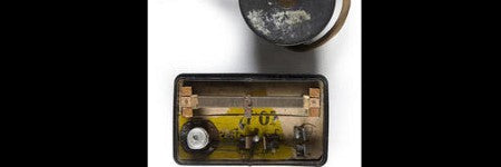 "The soap box was standard issue. The components are just wood & wire. We have not put the ear piece on for years as the prongs are rusty. The crystal is embedded in a thimble!