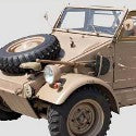 This vehicle is true to the original reconstruction of the prototype four-wheel drive Kübelwagen 86. Some parts originate from the VW Type 87 (Kommandeurwagen). The body is partly made from a Kübelwagen Type 82. Six Type 86 were built during the war, but its performance was disappointing, so it was never put on series production.