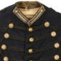 The second is a swallow-tailed full-dress frock coat, worn by a member of the New York State 71st Regiment. Dark blue in colour, it has a single row of 9 eagle buttons down the front, flanked by rows of large 71st Regiment buttons.