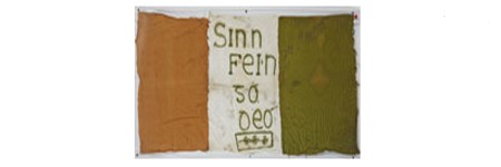 ![]() The flag is inscribed with the words 'Sinn Fein go deo' (Sinn Fein forever) |