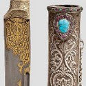 An exquisite Persian dagger of a similar type from circa 1800, which is also inlaid with gold and featuring grip panels of walrus ivory, is listed at €3,500.