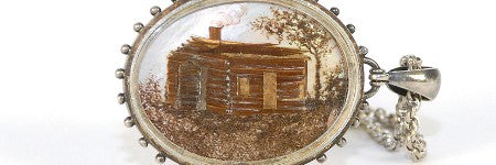 A note accompanying the lot reads: "Sketch of Abraham Lincoln's Birthplace, Harding, Ky, Feb. 12 1[80]9, Made from a lock of Lincoln's hair secured by Dr. Sabin Taft on the night of the assassination, April 14, 1865, Washington."