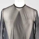 The long black silk dress, from 31 Rue Cambon Paris Biarritz, features a unique neckline and puffed sleeves hanging halfway down on the shoulder.