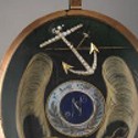 However, the unique heirloom is marked out by its astonishing contents - two locks of hair, encased on the obverse and reverse of the locket respectively.  The first lock, pale in colour, is mounted on the front section, tied in a bow and decorated with a gold and pearl anchor motif, indicative of its maritime connections.