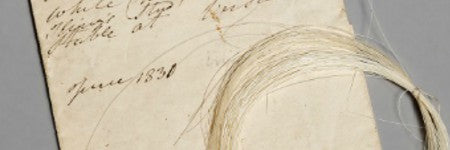 It's accompanied by a note that reads: "Hair from the Mane of Buonaparte's favourite white Charger, in the king's stud stable at Versailles / June 1830".