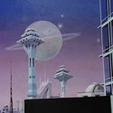 The spectacular matte painting features the landscape of Starbase 11, where the crew beams down to in the first act. These paintings were used by filmmakers to create the illusion of an environment that would otherwise be too expensive or impossible to build or visit.