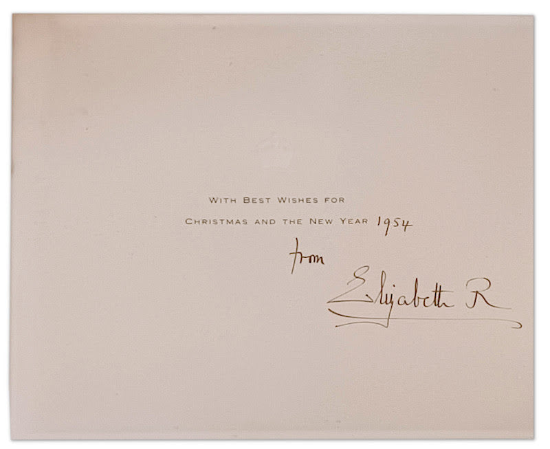 Dated 1954 and crisply signed “Elizabeth R” in black ink.