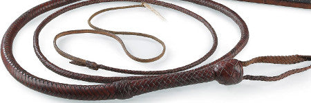 Designed by master whip maker David Morgan, the piece is constructed from kangaroo hide and measures 10 feet in length.