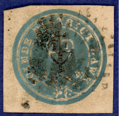 Even though several thousands of the Scinde Dawk stamps were used between 1852 and 1854, very few survive now.