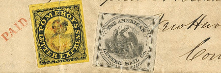 It explains: "Considering that the first United States Postmasters' Provisionals would not be issued until nearly one year after this was mailed, and the first General Issue two years after that, the presence of six stamps in three colors from three different stamp-issuing entities on this letter must have been perceived as extraordinary, even in 1844 when it was delivered to Pierpont & Hotchkiss.