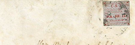 Adhesive stamps were much more common choices for provisionals, making this a key rarity.