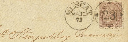 Another 1871 Muscat cover, also featuring a 23 duplex, sold for $36,090.