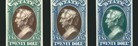 A complete set of 1881 Atlanta trial colour proofs is to lead a sale at Robert A Siegel in New York on September 16-17 with a $45,300 estimate.