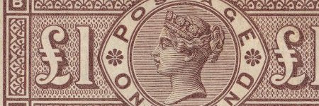 A rare 1884 £1 brown-lilac Great Britain postage stamp is coming to auction.