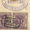 Its strong price is a product of the item's considerable rarity. It is the third earliest known Small Dragon / US combination cover and one of just 13 Small Dragon covers from 1886 recorded by Dr Kong Shiu-Ping.