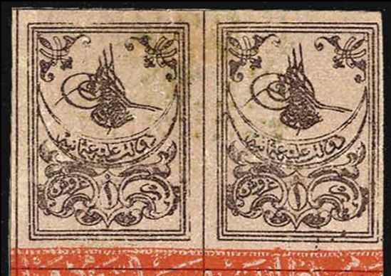 These are the first printed, adhesive postage stamps from Turkey, issued under the Ottoman Empire rule of Sultan Abdulaziz.